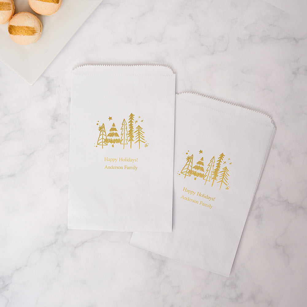 CHRISTMAS PINE TREES FLAT POCKET STYLE GOODIE BAG