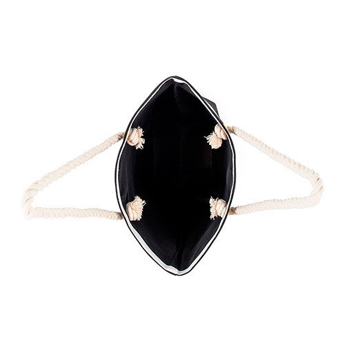 Stylish and practical this black and white bold striped tote is ideal for a day at the beach, lounging around the pool or just simply commuting in the city. Fully lined, the hard-wearing poly cotton fabric and comfy rope handles will make toting everything you need a breeze. Whether for yourself or your best gals, here is a great gift with a little bit of "bliss" built in. Be sure to add a personalized monogram or brief message to up the presentation factor.