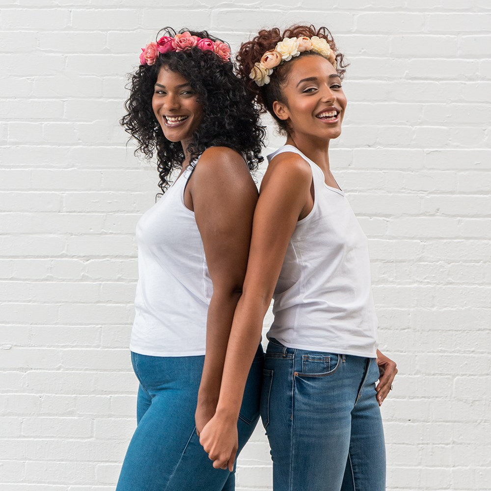 A charming mix of ivory white and blush pink artificial flowers woven into a simple wreath, the rose flower crown is a beautiful floral hair accessory for brides who love a natural, bohemian style. A cute headpiece for the bachelorette party to set the bride and her bridesmaids apart, it can also be an elegant floral bridal tiara to wear at the wedding, bridal shower, or engagement party. Inexpensive without looking cheap, the faux flower crown comes with a ribbon tie to adjust the fit of the circlet to suit different hairstyles. This gives the women in your bridal party the option of wearing the floral rose wreath as a headband woven into updos, sat upon their hair halo style, or to experiment to find the chic, boho look that works best for them!