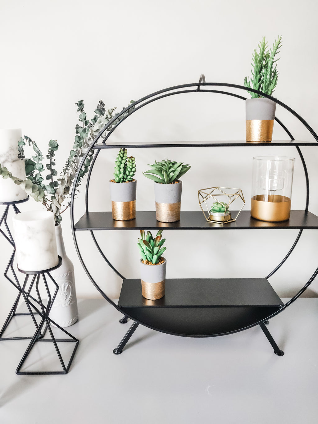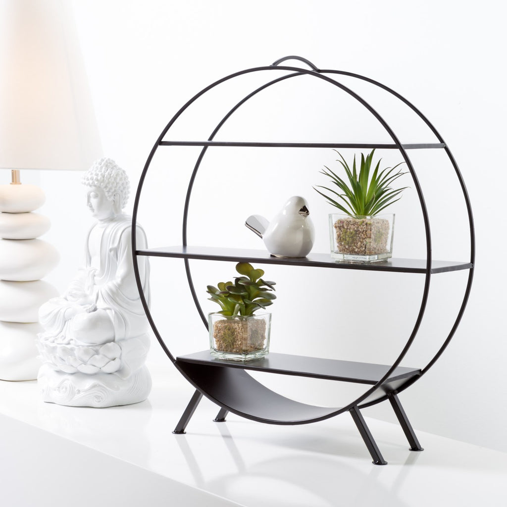 Showcase cherished pieces and make a dynamic display with this modern metal shelf.